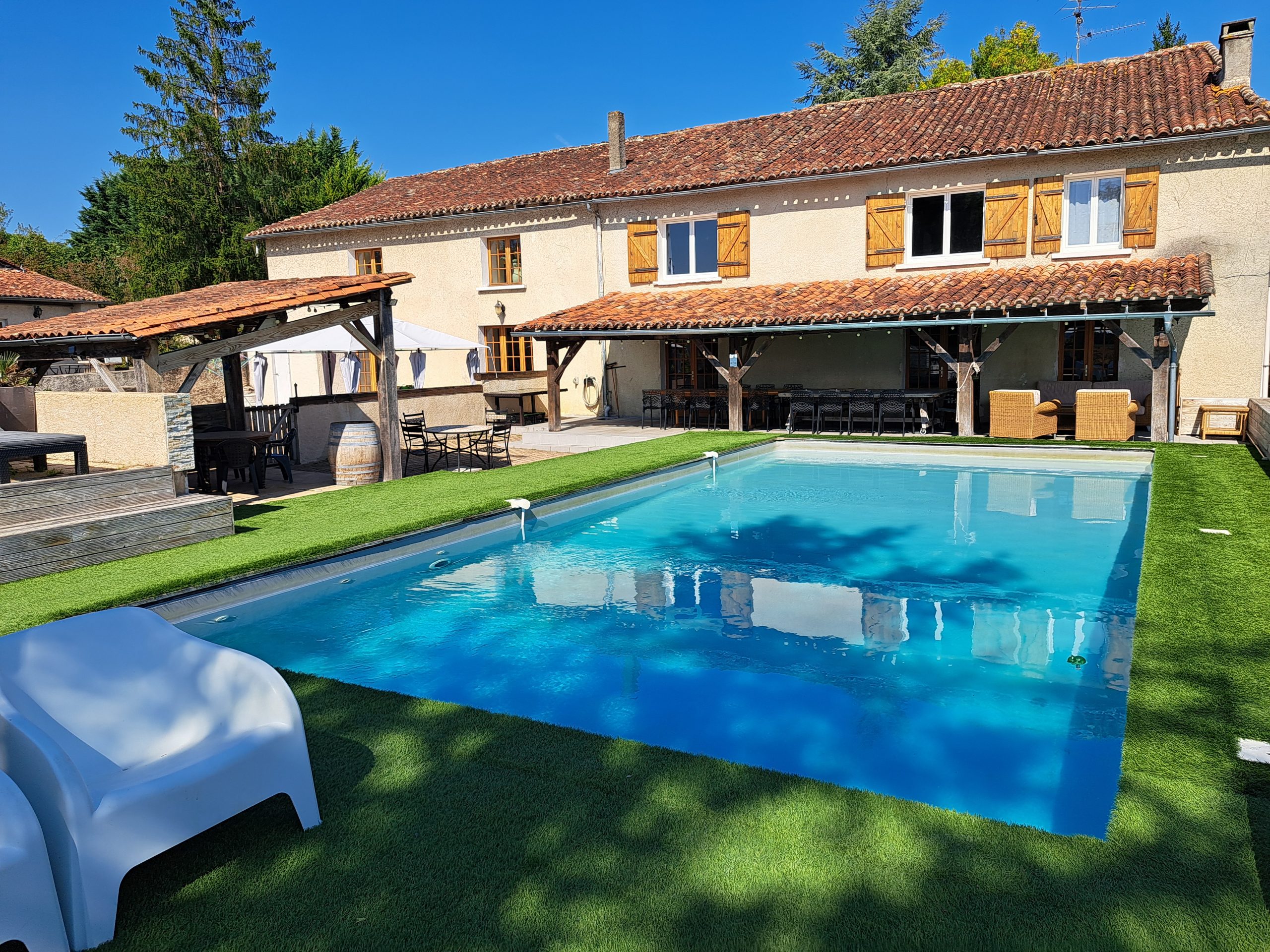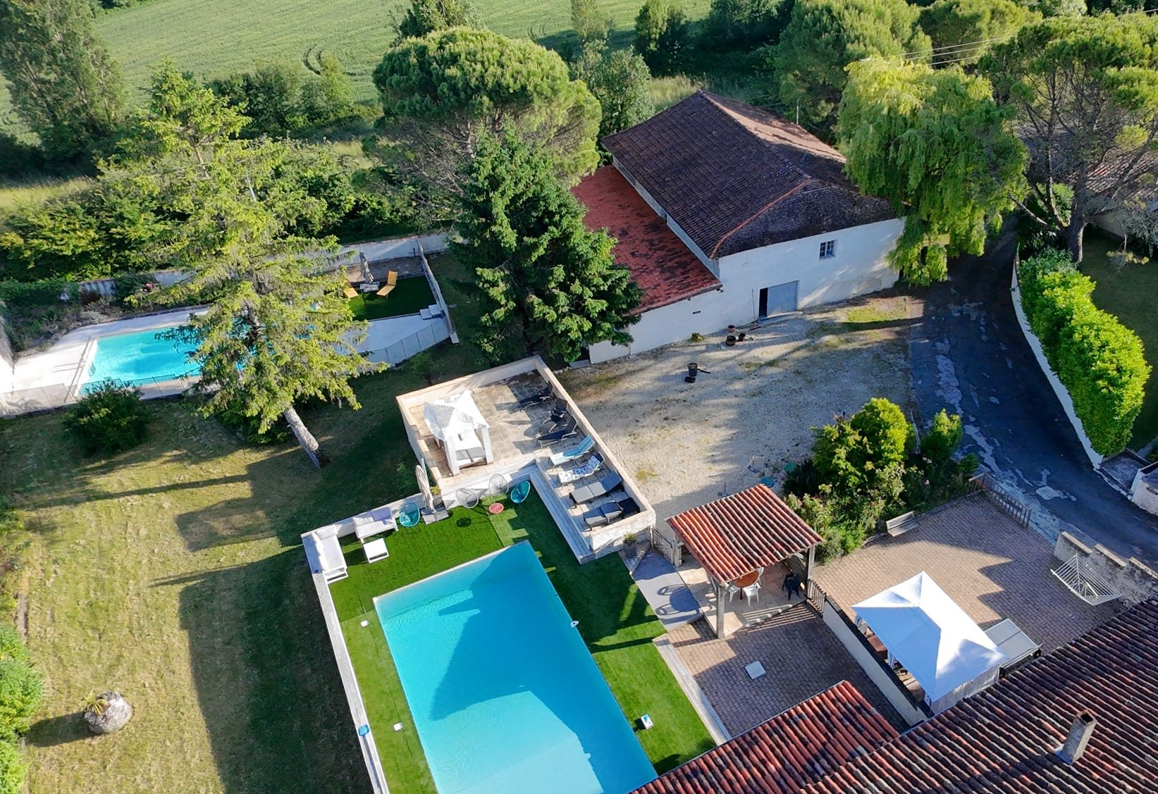 Tous les gîtes ont accès à une piscine, 2 privées pour Maison d’amis et Pins parasol, 1 partagée pour Orangers et Turquoise