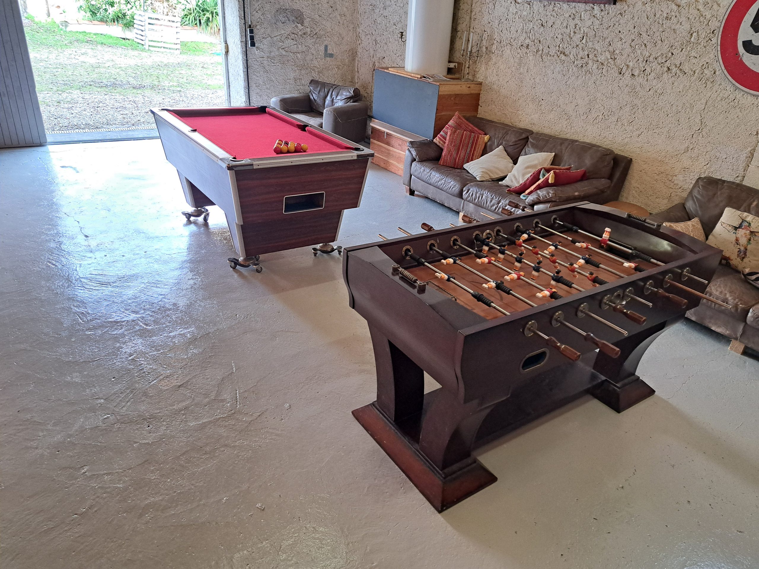 Salle de jeux – billard, babyfoot, fléchettes et un mini terrain de foot.