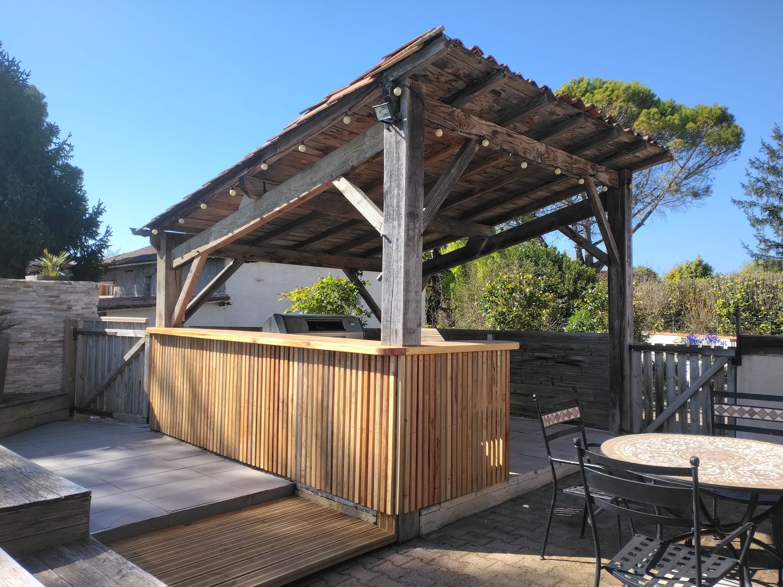 Chaque gite dispose d’un jardin et d’une terrasse privée, équipé de tables et de chaises, parfait pour des repas en plein air.